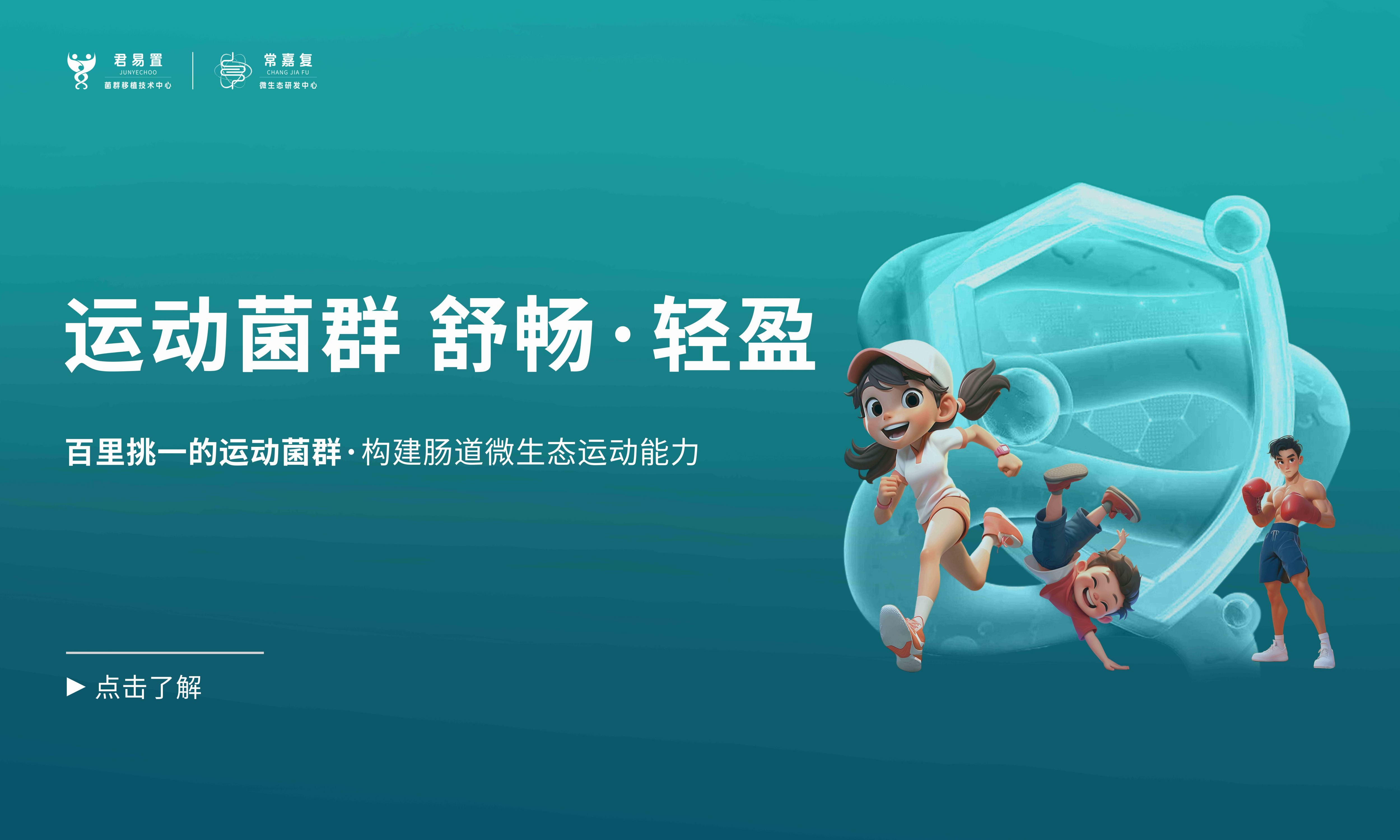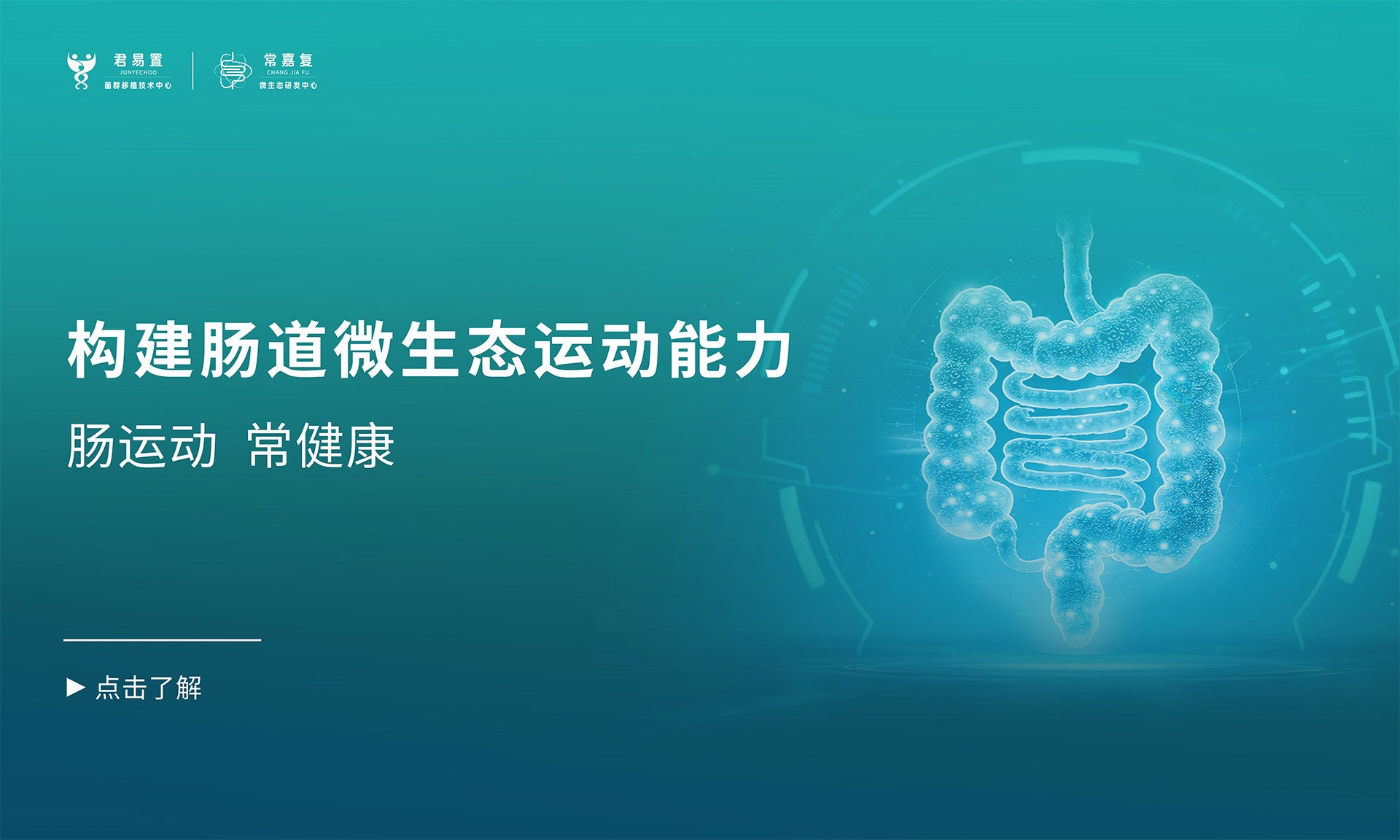 君易置生物科技是一家集臨床和基礎研究、S·FMT?運動菌群移植技術服務及微生態(tài)產品和方案研發(fā)為一體,專注于人體腸道微生態(tài)能力建設和個性化康復的高新技術企業(yè) 。公司秉承“腸運動,常健康”的核心理念,以“運動菌群 舒暢·輕盈”為研發(fā)邏輯,嚴選具有“運動菌群特征”的優(yōu)秀供體,研發(fā)調配促進菌群定植的定植伴侶,致力于通過科學調配菌群定植配方,提升患者的腸道微生態(tài)運動能力,實現疾病預防與治療。